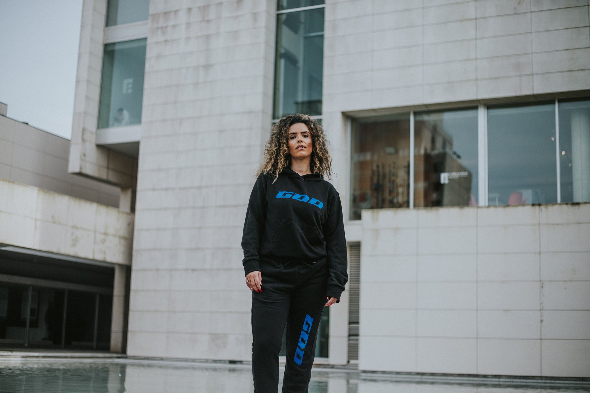 - Vinil GOD vermelho neon textura veludo na frente e nas mangas e calças