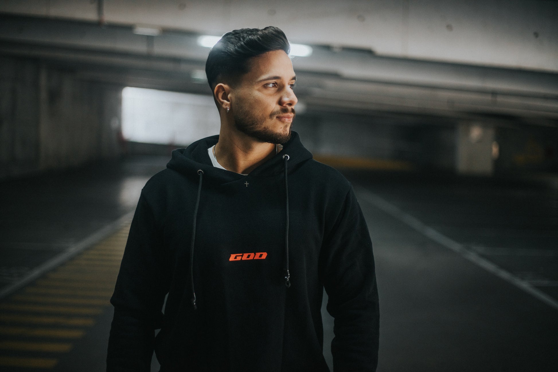 - Hoodie preto composição 50% algodão / 50 % polyester