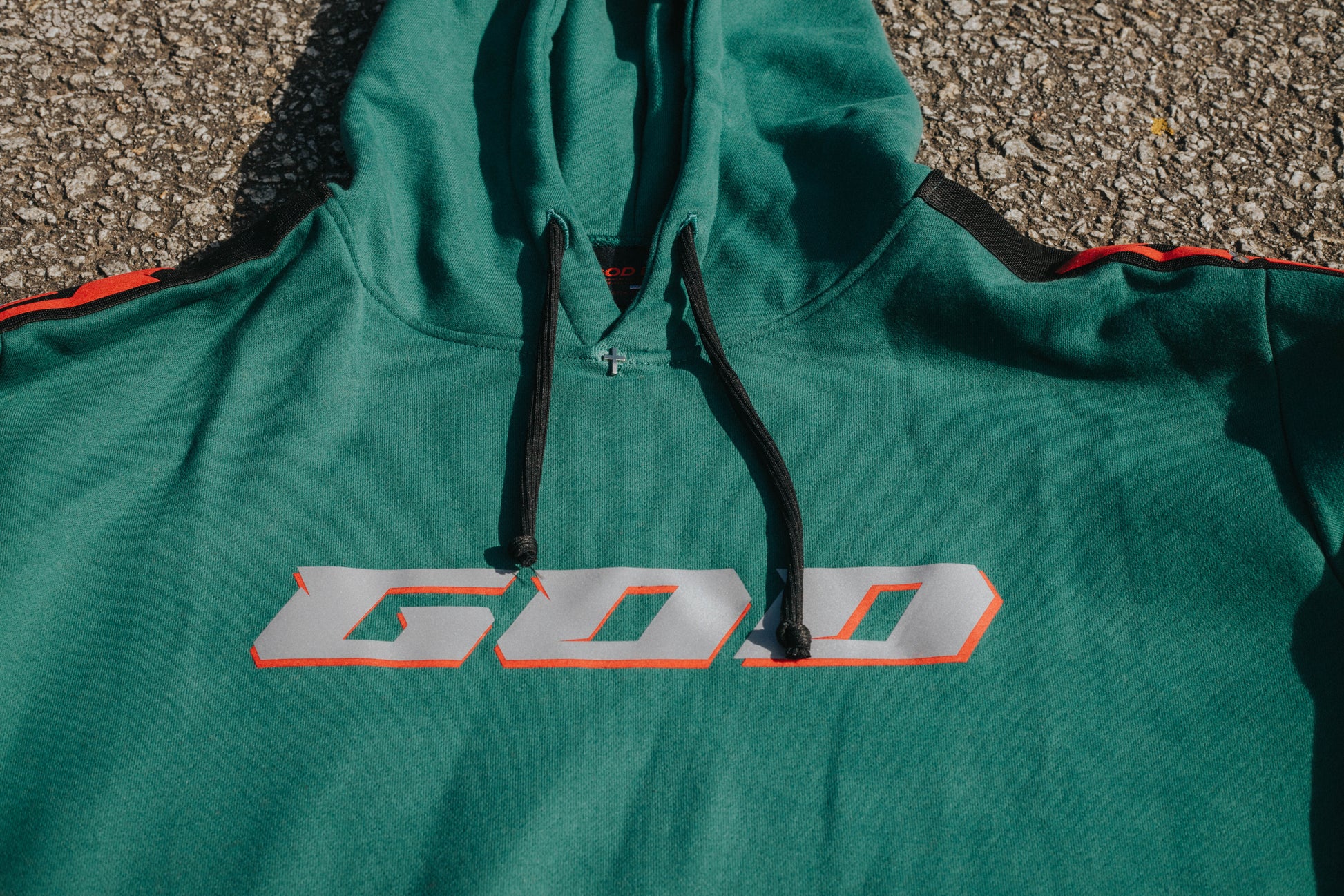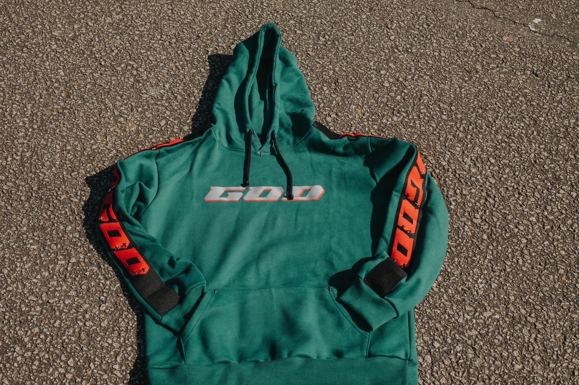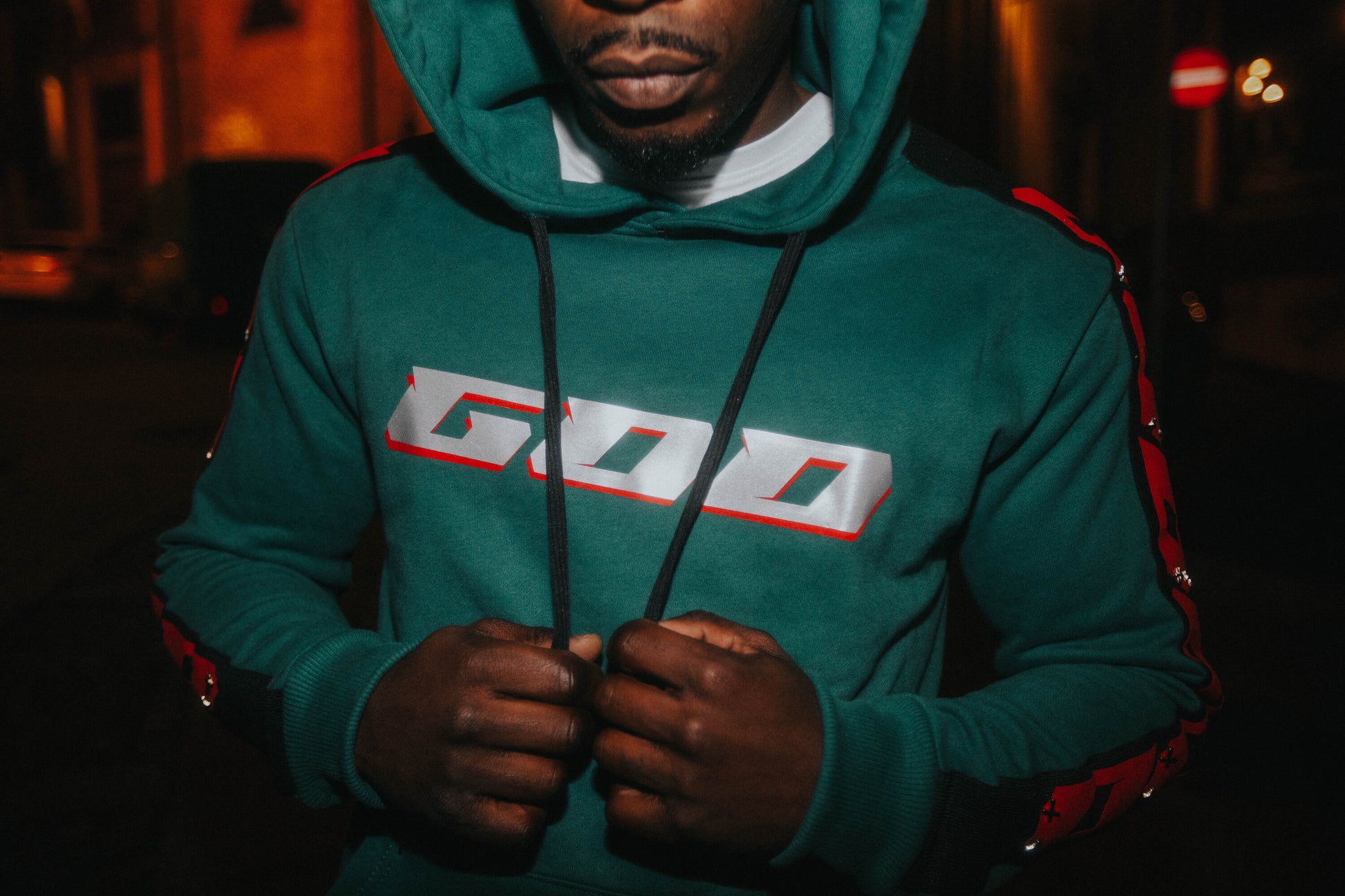 - Vinil GOD vermelho neon textura veludo na frente e cinza reflector e nas mangas e calças